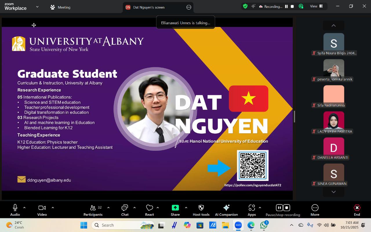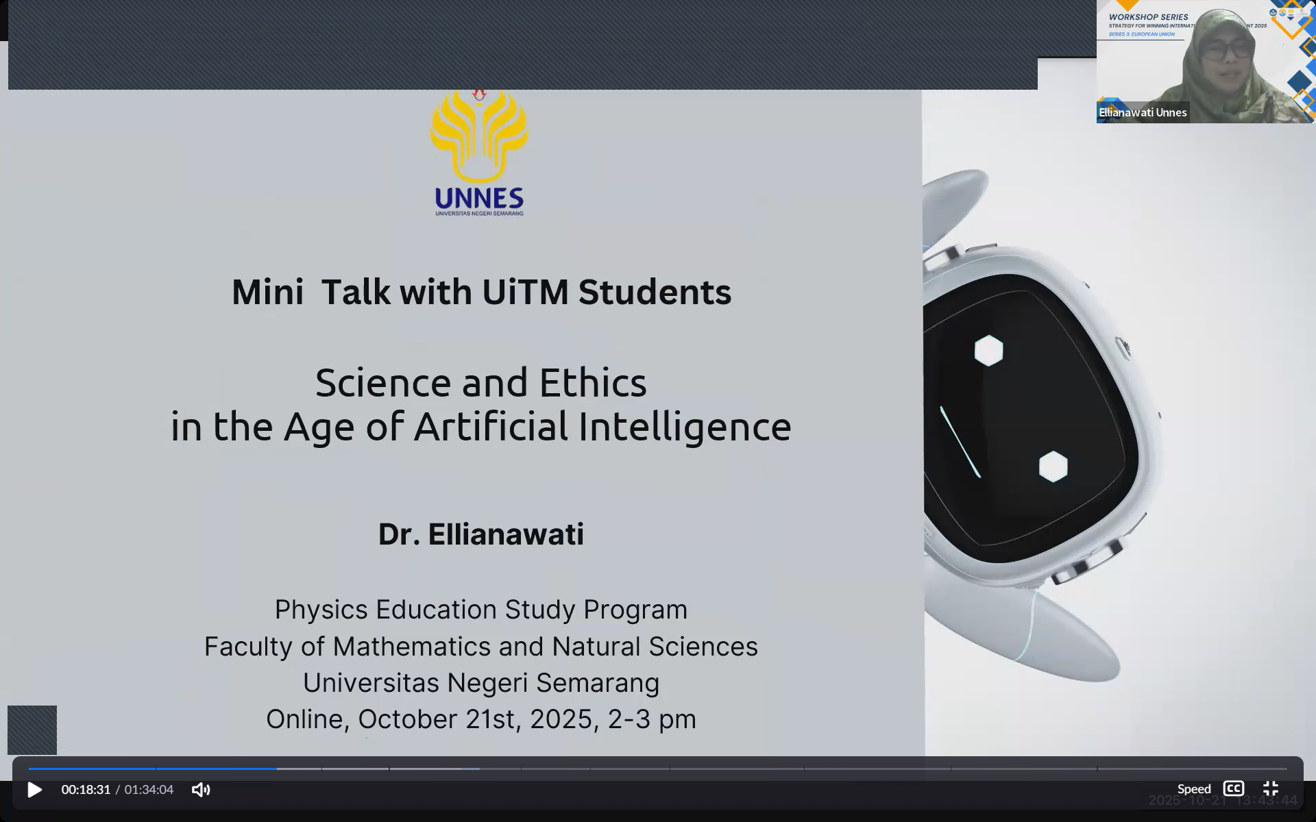 Semarang, October 21, 2025 — Universitas Negeri Semarang (UNNES) continues to strengthen its international academic presence through a Mini Talk with students from Universiti Teknologi MARA (UiTM), Malaysia. The event, held virtually via Zoom, featured Dr. Ellianawati, lecturer at the Physics Education Study Program, Faculty of Mathematics and Natural Sciences (FMIPA) UNNES, who presented a...