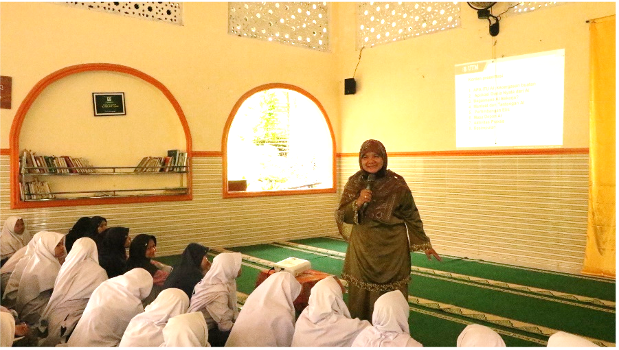 Kegiatan tersebut diselenggarakan pada hari Selasa, 13 Mei 2025 bertempat di SMIT Bina Amal, Gunungpati, Semarang. Narasumber yang dihadirkan adalah Dr. Tri Sri Noor Asih, M.Si. dari FMIPA Unnes dan Associate Professor Dr. Norma Alias dari UTM. Narasumber berdialog interaktif dengan siswa-siswi SMP maupun SMA dan menggali sejauh mana pengetahuan siswa-siswi mengenai AI dan apa yang biasa mereka lakukan menggunakan AI. Selanjutnya narasumber memaparkan tentang manfat AI dalam berbagai aspek kehidupan dan tantangan apa yang dihadapi dalam penggunaan AI tersebut. Siswa pun aktif bertanya apakah AI lebih banyak manfaatnya ataukah lebih banyak bahayanya. Narasumber menandaskan bahwa AI ibarat pisau bermata dua. Jika digunakan dengan tepat, ia dapat mempercepat pekerjaan, mempermudah analisis data, dan membantu pembelajaran. Namun, jika tidak dikontrol, AI bisa mengurangi daya kritis dan kreativitas manusia. Di samping itu kunci pemanfaatan AI adalah keseimbangan. Siswa harus tetap mengasah logika dan kemampuan problem-solving secara mandiri, bukan hanya mengandalkan teknologi.