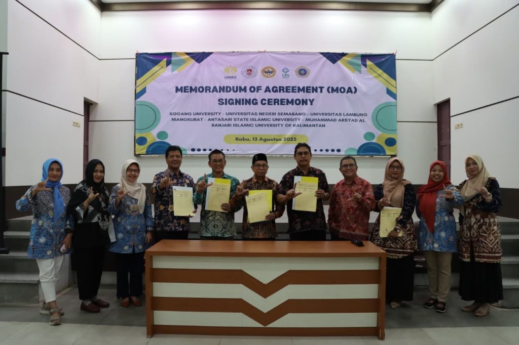 Acara diawali dengan penandatanganan Memorandum of Agreement (MoA) antara UNNES dengan tiga universitas mitra di Banjarmasin. Momentum ini sekaligus disertai penyerahan tiga unit printer 3D dari Sogang University melalui UNNES, yang akan dimanfaatkan sebagai sarana inovatif dalam mendukung pengembangan laboratorium dan media pembelajaran di perguruan tinggi mitra.