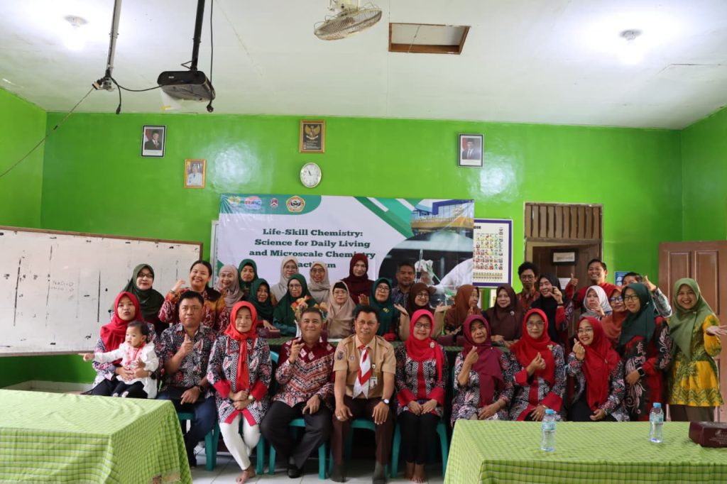 Setelah prosesi MoA, rangkaian kegiatan pengabdian masyarakat dimulai dengan paparan inspiratif dari para pakar. Prof. Dr. Edy Cahyono, M.Si. membuka sesi dengan materi tentang pentingnya rekayasa ulang jalur sintesis kimia demi keberlanjutan lingkungan. Dilanjutkan dengan workshop praktik langsung oleh Harjito, M.Sc. yang memperkenalkan integrasi Internet of Things (IoT) untuk inovasi pengajaran kimia. Peserta kemudian diajak menerapkan konsep small scale chemistry bersama Endah Fitriani Rahayu, M.Sc., Devy Lestari, M.Pd., dan Ridho Prasetyo, S.Si., yang menekankan pentingnya praktikum laboratorium berskala kecil yang ramah lingkungan, aman, dan hemat biaya. Rangkaian hari pertama ditutup dengan pelatihan Ethno-STEM oleh Prof. Dr. Woro Sumarni, M.Si., yang menggabungkan pendekatan sains, teknologi, dan kearifan lokal sebagai fondasi pembelajaran yang kontekstual dan relevan.