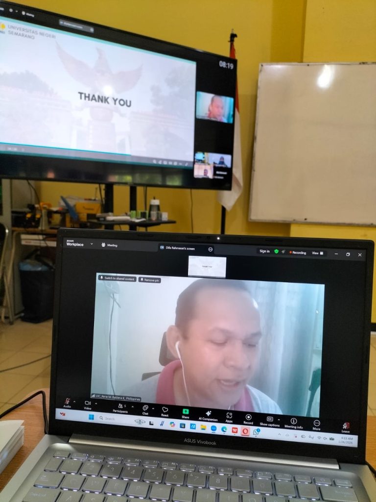 Fakultas Matematika dan Ilmu Pengetahuan Alam (FMIPA) Universitas Negeri Semarang (UNNES) terus memperkuat internasionalisasi akademik melalui pelibatan penguji internasional dalam ujian skripsi mahasiswa. Pada Senin, 26 Januari 2026, pukul 08.00 WIB, mahasiswa Program Studi Pendidikan Fisika Difa Rahma Sari melaksanakan ujian skripsi dengan menghadirkan penguji dari Filipina.