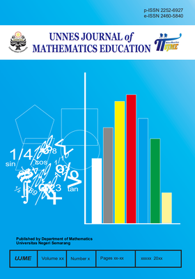 Unnes Journal of Mathematics Education is a peer-reviewed open access journal published thrice in a year (March, August and November). The UJME facilitates a forum for researchers and professional on mathematics education to discuss their ideas in an online (e-ISSN 2460-5840) and a printed (p-ISSN 2252-6927) version.SINTA 3 March, August and November Journal Link