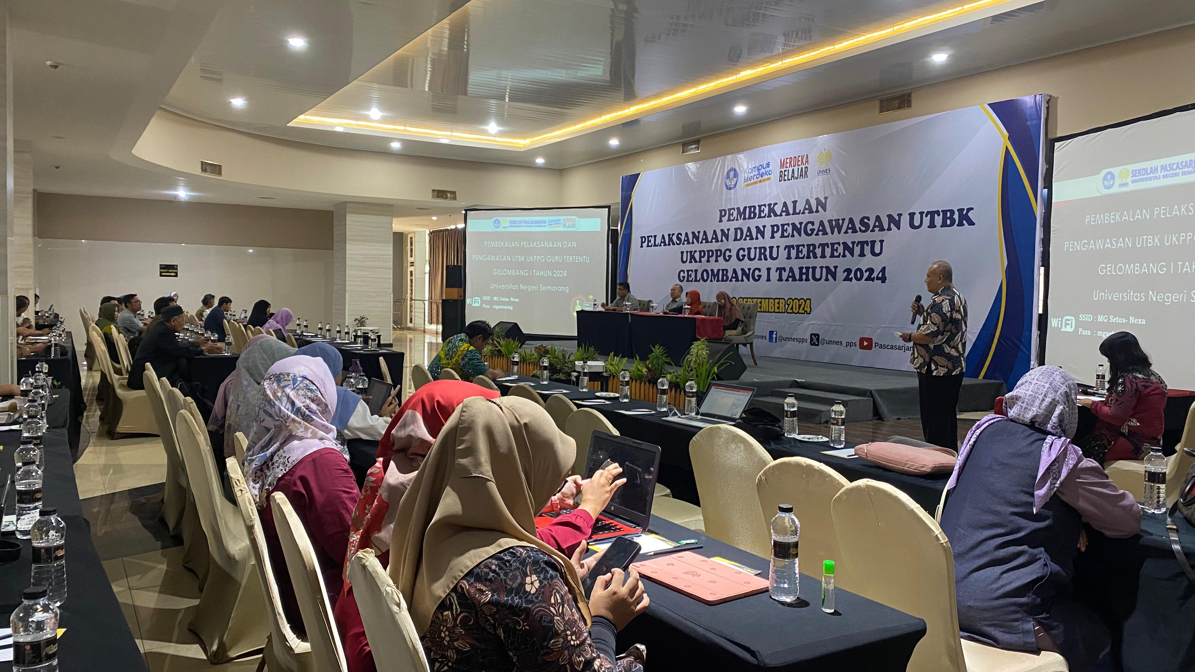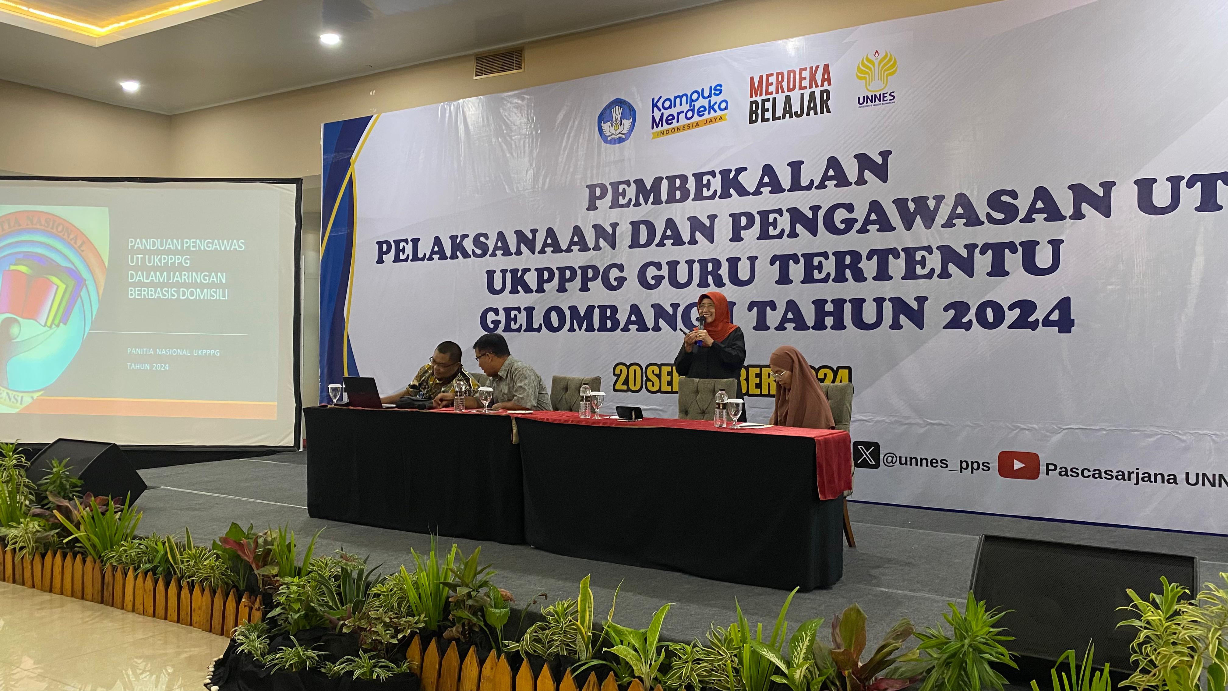 20 September 2024, bertempat di hall MG Setos hotel lantai 5, dilaksanakan briefing kepengawasan untuk UKPPPG Gelombang 2 tahun 2024. UKPPPG kali ini ditujukan untuk peserta PPG untuk Guru Tertentu Pilotting 1 tahun 2024 dan retaker PPG daljab. Hadir dalam briefing adalah Prof. Dr. Kisyani Leksono, M.Hum. sebagai penyelia dari panitia nasional