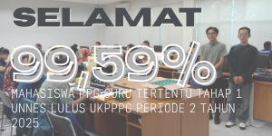 SELAMAT !CONGRATULATION! Semarang – Universitas Negeri Semarang (UNNES) kembali menorehkan prestasi dalam pelaksanaan Uji Kompetensi PPG (UKPPPG) Periode II Tahun 2025. Sebanyak 6.692 mahasiswa PPG Guru Tertentu UNNES dinyatakan lulus, dari total 6.708 peserta PPG GT T1 dan 6 Retaker, yang mengikuti ujian. Dari jumlah tersebut, tercatat hanya 6 peserta retaker dan 28 peserta dinyatakan...Read More