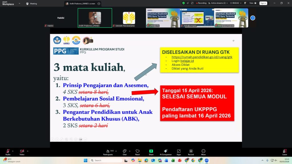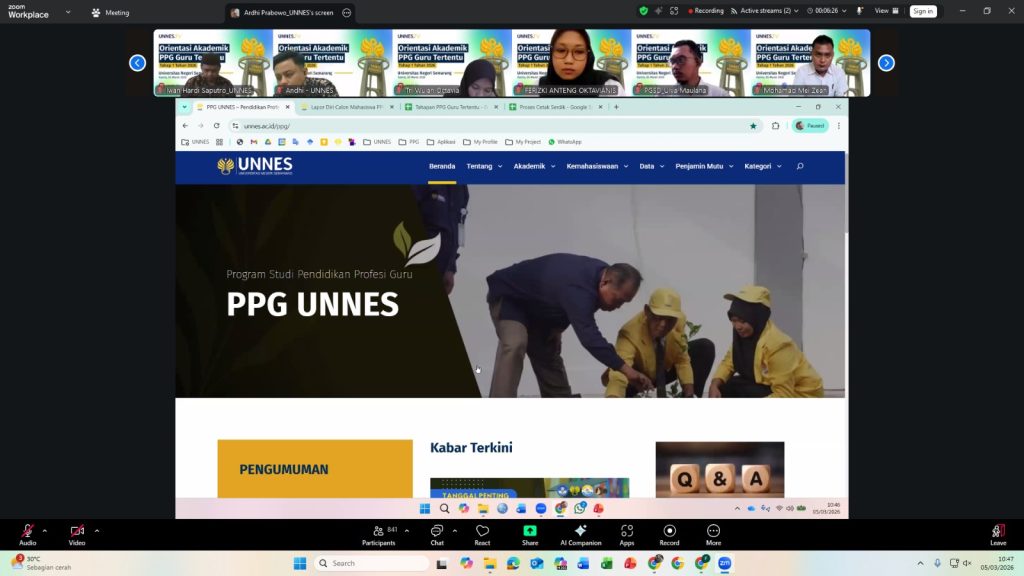 Mahasiswa juga sudah melakukan orientasi pada 5 Maret 2026 melalui moda daring. Pada orientasi, mahasiswa dipandu untuk melakukan proses masuk ke ruangGTK.