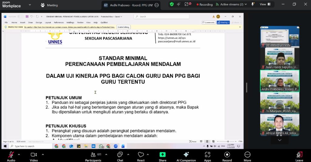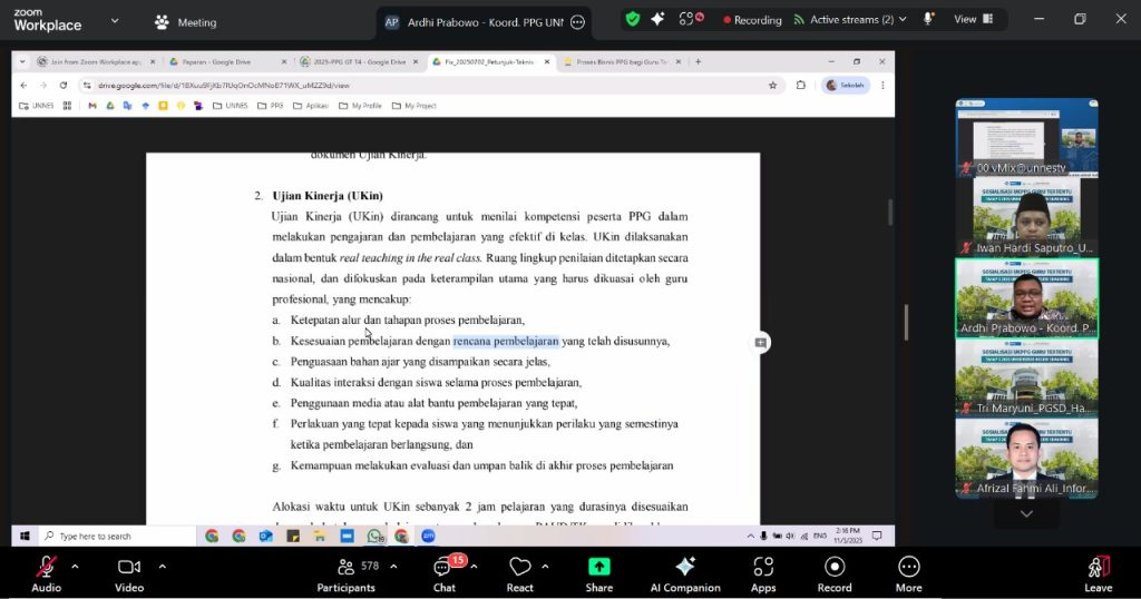 Di sisi lain, tim cetak sertifikat pendidik (serdik) serta bagian keuangan juga mengadakan koordinasi melalui sesi daring untuk mempersiapkan proses pasca ujian. Kesiapan administratif ini dilakukan agar setelah mahasiswa dinyatakan lulus, proses penerbitan sertifikat pendidik dan administrasi lainnya dapat berjalan lancar. Dengan pendampingan yang komprehensif ini, mahasiswa PPG UNNES diharapkan dapat menjalani ujian dengan percaya diri dan memperoleh hasil terbaik.