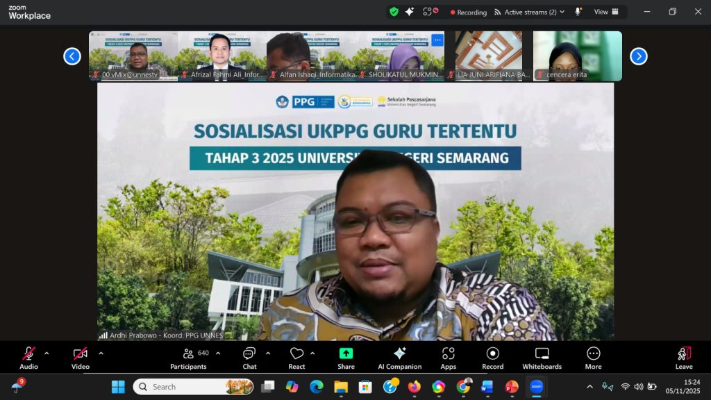Semarang, 21 Oktober 2025 — Uji Kinerja dan Penilaian Pendidikan Profesi Guru (UKPPPG) merupakan tahapan akhir dalam rangkaian Pendidikan Profesi Guru (PPG) yang bertujuan untuk mengukur kompetensi calon guru profesional. Melalui UKPPPG, peserta diuji baik dari segi kemampuan pedagogik, profesional, sosial, maupun kepribadian sebagai calon pendidik yang siap terjun ke dunia pendidikan. Sebagai salah satu...