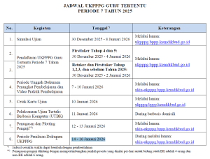 Retaker dan Firsttaker Tahap 1,2,3, dan sebelum Tahun 2025: 30 Desember 2025 – 2 Januari 2026, melalui laman ukpppg.bppp.kemdikbud.go.id