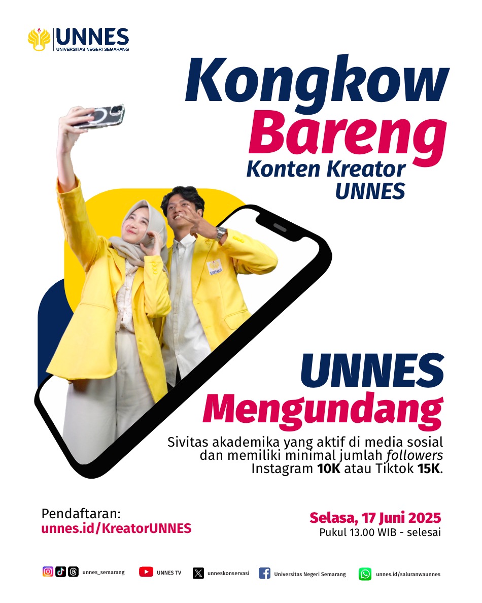 Universitas Negeri Semarang (UNNES) terus menunjukkan komitmennya dalam mewujudkan keterbukaan informasi publik melalui pendekatan komunikasi yang inovatif. Salah satunya dengan menggandeng para konten kreator kampus dalam kegiatan “Kongkow Bareng Konten Kreator UNNES” yang telah sukses diselenggarakan pada Selasa, 17 Juni 2025. Kegiatan ini diikuti oleh 15 influencer terpilih yang berasal dari berbagai fakultas di UNNES....