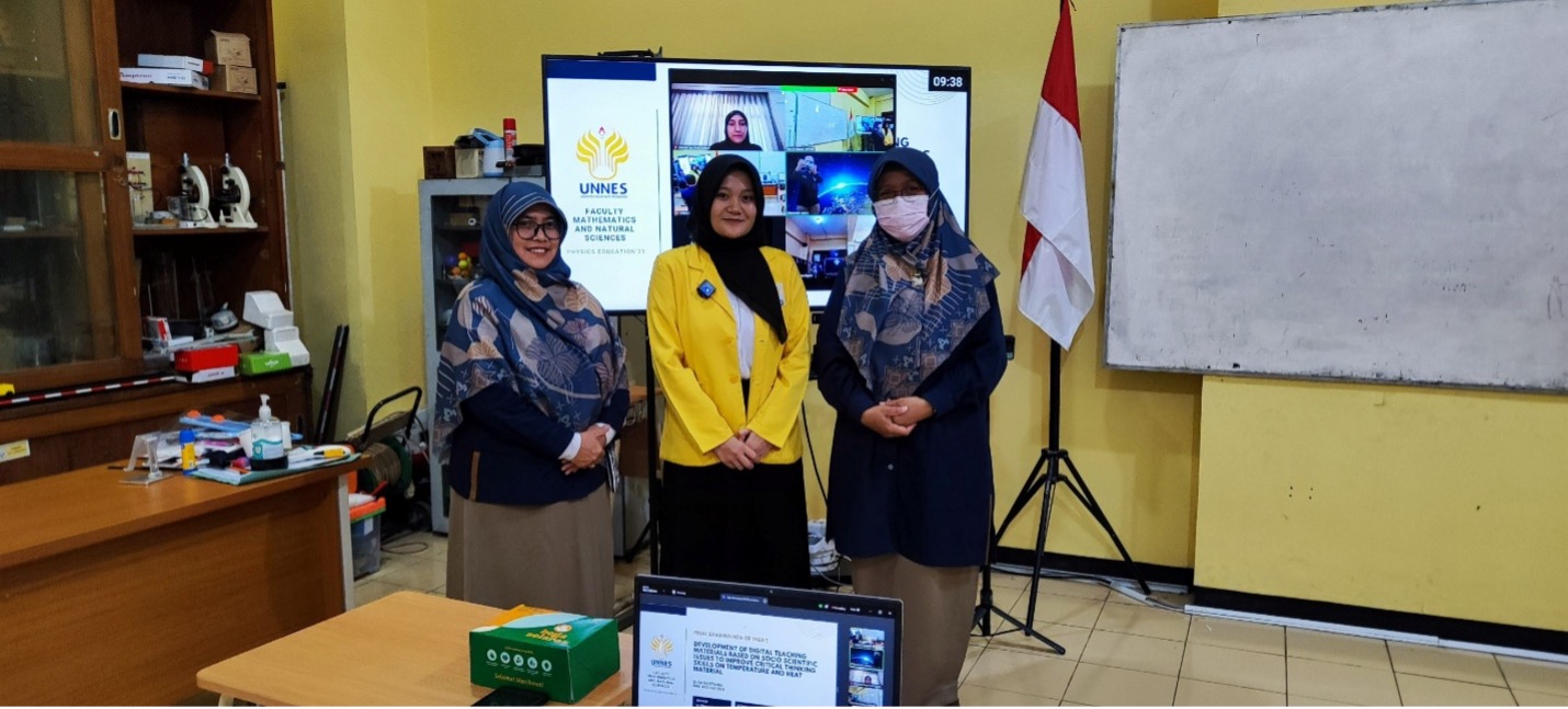 Semarang, June 30, 2025 – Student of the Physics Education Study Program, Semarang State University (UNNES), Elsa Destiana, successfully completed her thesis exam in a hybrid manner with the title “Development of Digital Teaching Materials Based on Socio-Scientific Issues (SSI) to Improve Critical Thinking Skills on the Topic of Temperature and Heat.”