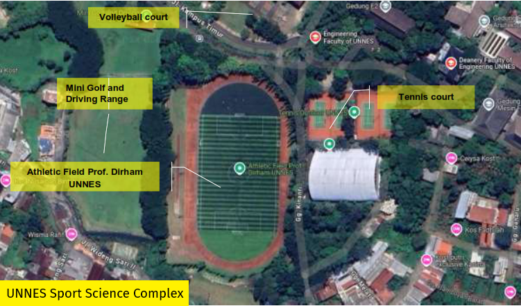 Open spaces at UNNES are designed to serve multiple ecological, educational, and social functions. These areas not only enhance the microclimate and biodiversity of the campus but also provide inclusive spaces for academic and community activities. Major open areas include the Faculty of Sport Science Complex (45,552 m²), which encompasses the Prof. Dirham Athletic Field, volleyball and tennis courts, and a mini golf driving range frequently used for both university and regional sporting events. The UNNES Pond (4,977 m²) functions as a natural water reservoir and scenic recreation area, while the UNNES Cultural Village (8,803 m²) offers a cultural and educational space surrounded by campus forest vegetation.