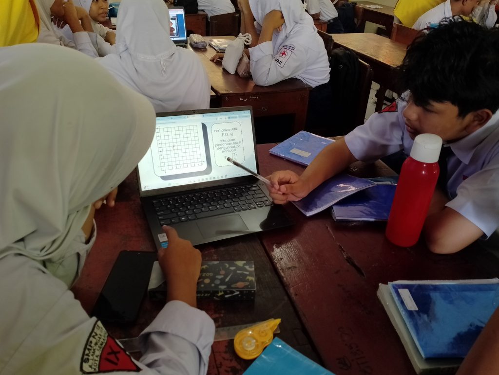 Second, it integrates Challenge-Based Learning (CBL), where students are not merely solving equations but are challenged in collaborative groups to design Nusantara batik patterns applying geometric transformation principles. The creative design process is conducted through visual code blocks using the Scratch platform, merging cultural heritage with computational reasoning.