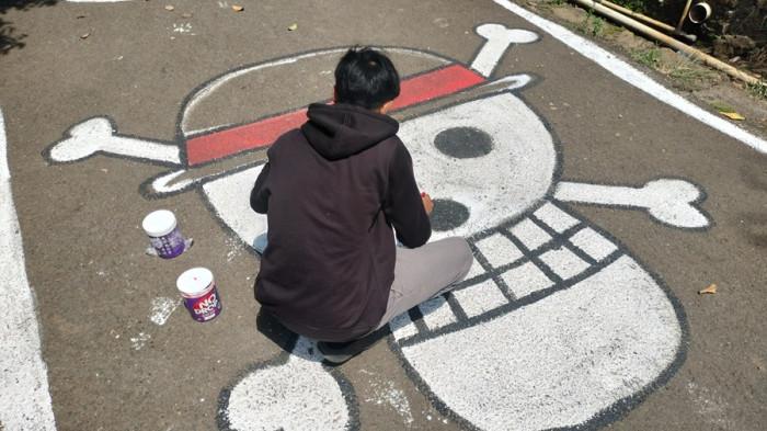 The image of a skull wearing a straw hat, an iconic symbol of fictional pirates in the One Piece series, was seen decorating several corners of villages, mural walls, and even flying as a flag on poles.
