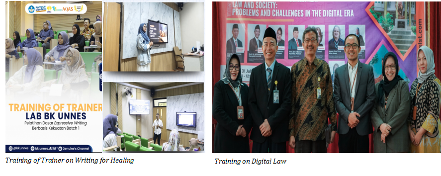 Meanwhile, digital financial literacy and psychological readiness training have been provided for vocational interns preparing to work in Japan, supporting their adaptation and resilience in international environments. UNNES also offers training on digital law to help citizens understand legal frameworks in the digital era, and eco-conservation workshops in Ngesrepbalong Village, focusing on sustainable craft production and environmental awareness.