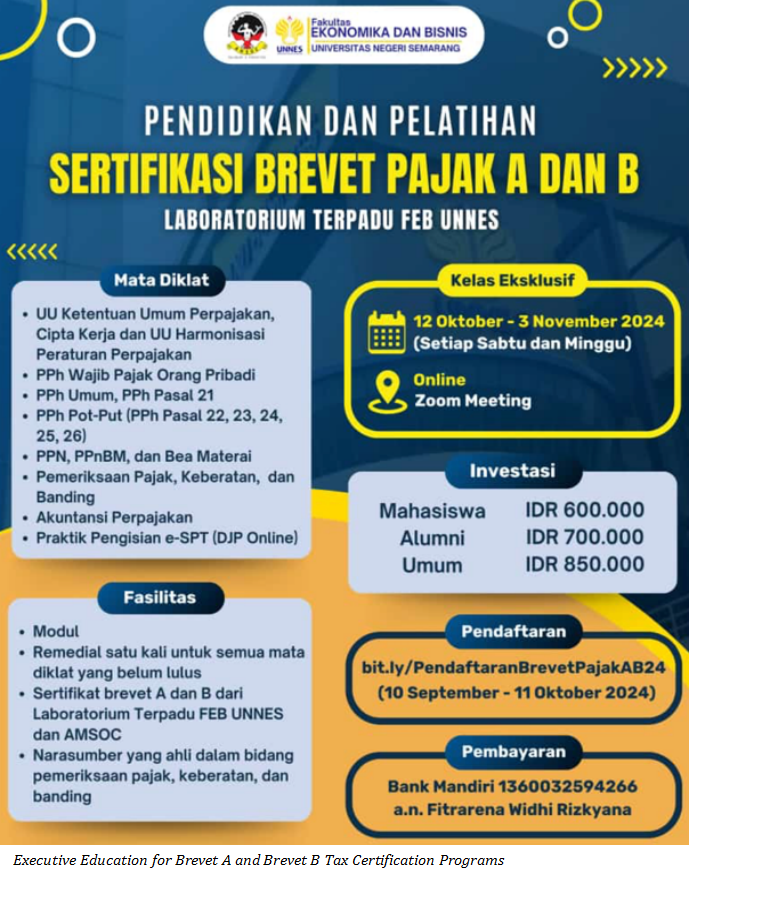 A number of notable programs highlight UNNES’s commitment to inclusive and impactful learning. For example, Central Java government officials have participated in training on productive waste management, equipping them to implement environmentally responsible practices within their regions. The Brevet A and Brevet B tax certification programs are open to the general public, helping individuals and professionals gain national certification in taxation and improve financial literacy.