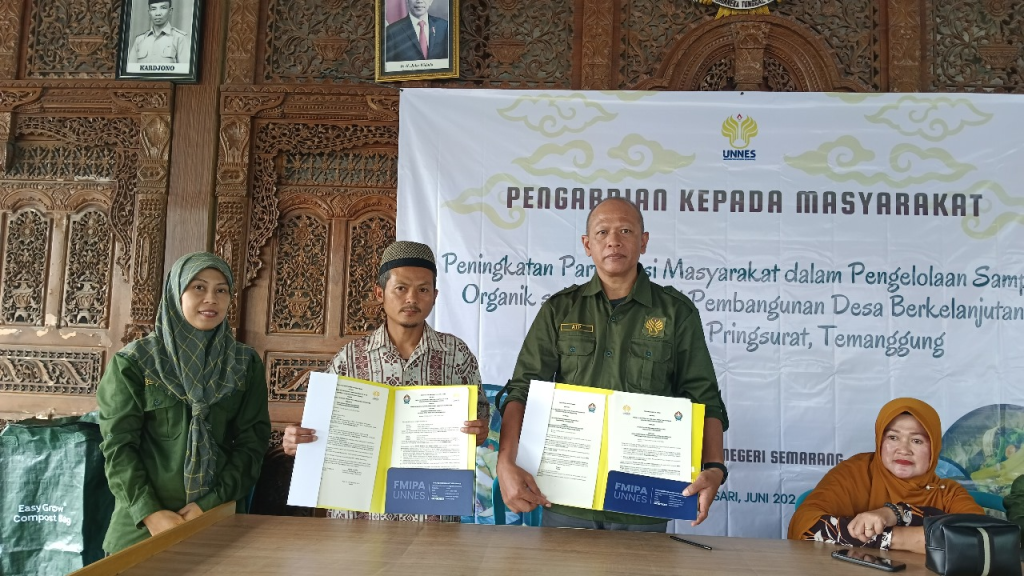 In June 2024, UNNES Faculty of Mathematics and Natural Sciences (FMIPA) partnered with the Rejosari Village government in Pringsurat District, Temanggung, to enhance sustainable agricultural practices among local residents. This collaboration promotes SDG 2 (Zero Hunger) and SDG 12 (Responsible Consumption and Production).