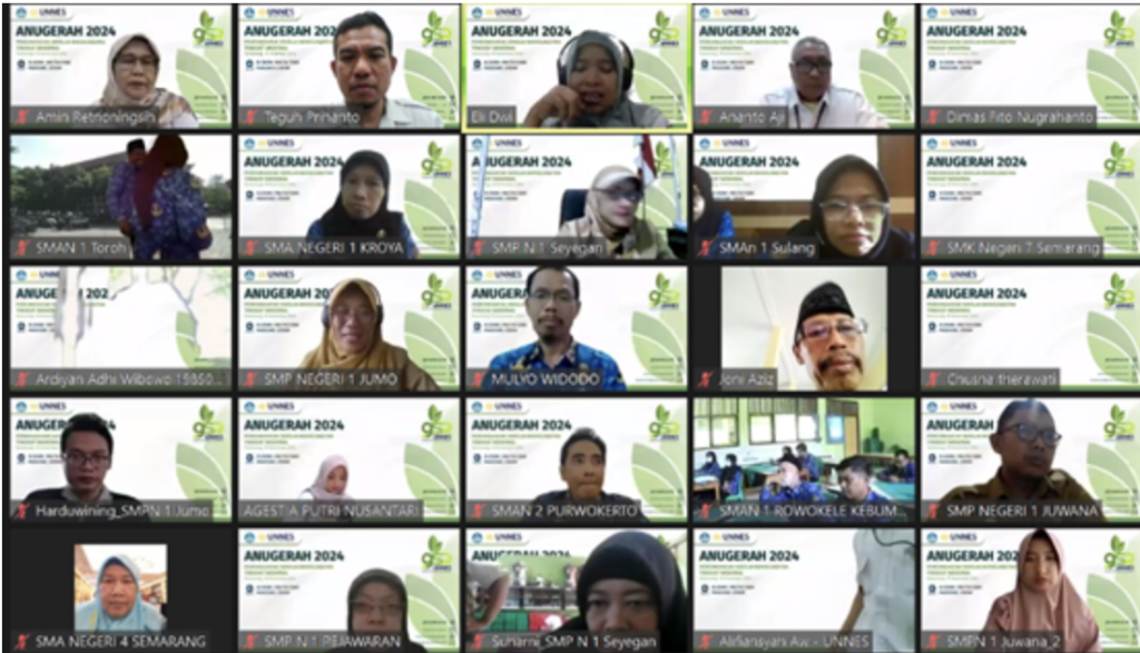 Furthermore, the UNNES Green School Ranking 2024 results, announced online on November 18, 2024, involved the Central Java Provincial Education Office, Environmental Agency, and participating school heads nationwide. The initiative reflects UNNES’s close cooperation with government institutions to foster climate action, waste management, and sustainability practices within schools.