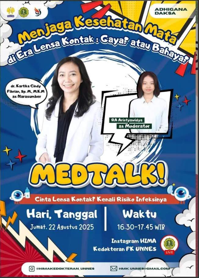 Semarang, August 22, 2025 — The Student Association of the Faculty of Medicine, Universitas Negeri Semarang (UNNES), successfully held another session of its regular educational program, MEDTALK!, with the theme “Maintaining Eye Health in the Era of Contact Lenses: Style or Risk?”