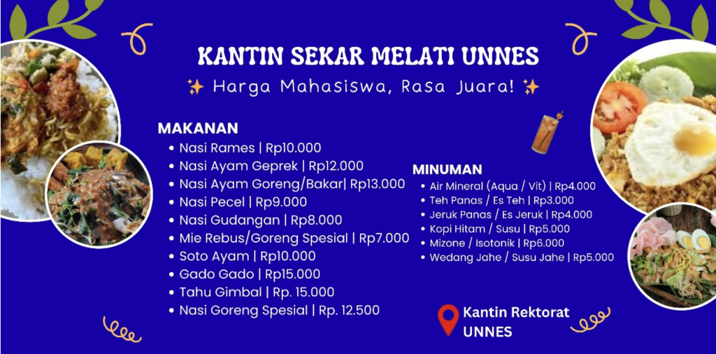 UNNES also ensures that the food ingredients come from local organic farmers and campus-based eco-production, helping reduce the university’s carbon footprint while supporting the local green economy. To maintain high food quality, all campus canteens are regularly monitored by the Health and Food Safety Team from the Student Affairs Office to ensure hygiene, safety, and nutritional value.