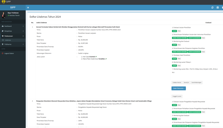 UNNES has research output records called SIPP, which document publications, scholarly articles, conference papers, and other academic works produced by lecturers. These records are important because they demonstrate that promotion decisions are supported by verifiable research outputs, including those developed through interdisciplinary collaboration. We also have internal research grants and funded collaborative projects. These records indicate that interdisciplinary research is not only encouraged but also institutionally supported through research funding schemes. When funded projects involve collaboration across fields, they provide clear evidence that interdisciplinary work forms part of the university’s recognised academic achievements.