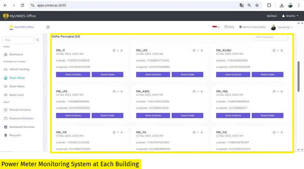 By aligning the results of its energy audits with the directives in Rector’s Decree No. B/3669/UN37/HK.02/2024, UNNES demonstrates that it not only reviews and monitors energy performance systematically, but also embeds energy efficiency and renewable integration as core strategies in achieving its 2045 carbon-neutral vision.