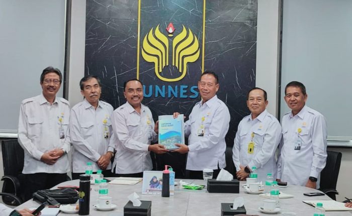 Penyerahan Laporan Hasil Audit (LHA) Satuan Pengawas Internal Tahun 2023 kepada Rektor Universitas Negeri Semarang Prof. Dr. S Martono, M.Si. oleh Ketua Satuan Pengawas Internal (SPI) Universitas Negeri Semarang Prof. Dr. Muhammad Khafid, M.Si., QIA di Ruang Rapat Rektor Gedung H lantai 2.