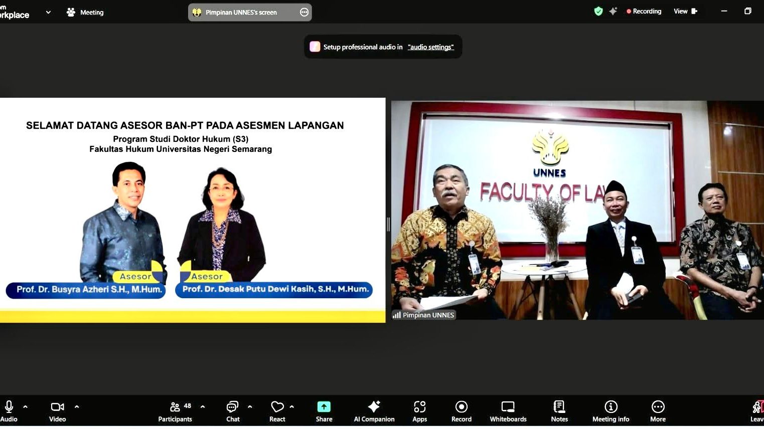 Tingkatkan Mutu dan Kualitas Pendidikan, FH UNNES Gelar Asesmen Lapangan Program Doktor Hukum