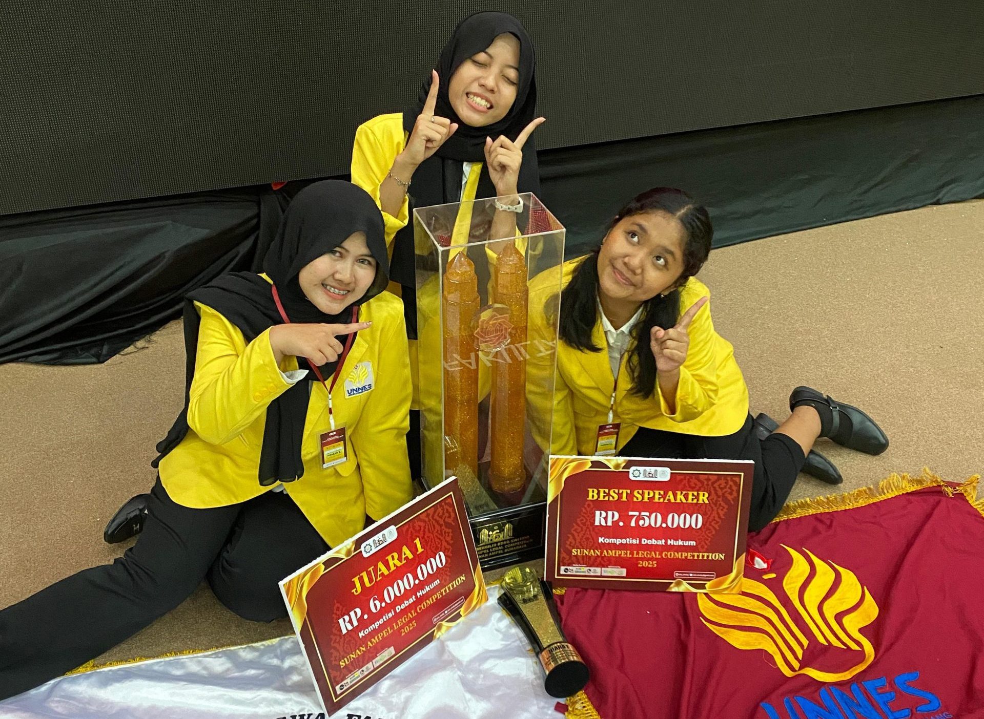Mahasiswa Fakultas Hukum Universitas Negeri Semarang (FH UNNES) kembali mengukir prestasi membanggakan di tingkat nasional. Delegasi FH UNNES berhasil meraih Piala Bergilir Bong Swi Hoo, dan penghargaan Best Speaker dalam ajang Sunan Ampel Legal Competition 2025, kompetisi debat hukum nasional yang diselenggarakan oleh Fakultas Syariah dan Hukum UIN Sunan Ampel Surabaya, pada 19-21 Mei 2025....