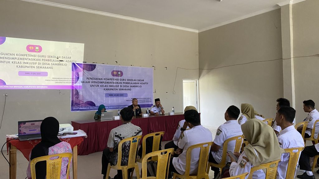 Program Studi Psikologi Fakultas Ilmu Pendidikan dan Psikologi (FIPP) Universitas Negeri Semarang (UNNES) melaksanakan program pengabdian kepada masyarakat sebagai upaya meningkatkan kesiapan guru sekolah dasar dalam menghadapi kelas inklusif. Kegiatan ini digelar di Desa Sambirejo, Kecamatan Bringin, Kabupaten Semarang, Rabu (23/7). Dengan mengusung tema “Penguatan Kompetensi Guru Sekolah Dasar dalam Mengimplementasikan Pembelajaran Adaptif untuk Kelas...