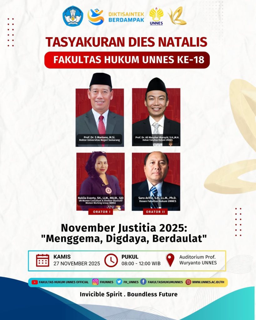 Sampai bertemu di Tasyakuran Dies Natalis ke-18 Fakultas Hukum UNNES! 🎉❤️